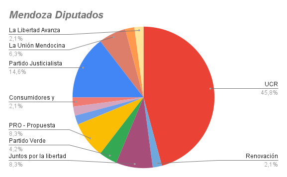 En este gráfico se pueden observar los bloques legislativos en los que está dividida la Cámara de Senadores de Mendoza...