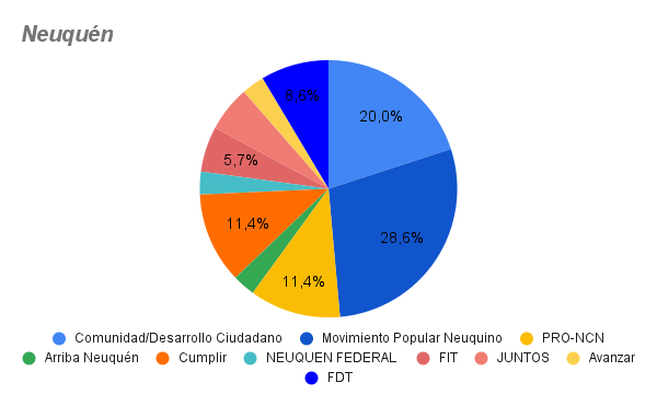 En este gráfico se pueden observar los bloques legislativos en los que está dividida la Cámara de Diputados de Corrientes...