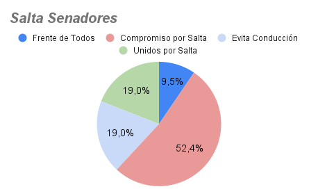 En este gráfico se pueden observar los bloques legislativos en los que está dividida la Cámara de Senadores de Salta...