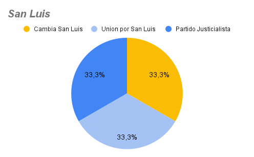 En este gráfico se pueden observar los bloques legislativos en los que está dividida la Cámara de Senadores de Salta...